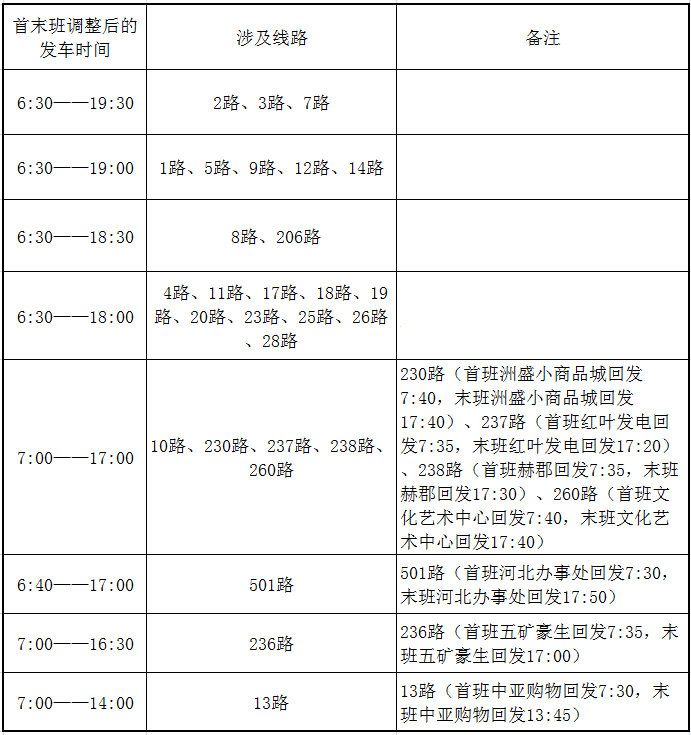 5.通養(yǎng)老服務中心班次:12路,2月15日—18日(三十至初三)首班車6:12(火車站)調整為6:30,其余班次不變;14路,2月15日—18日(三十至初三)首班車6:00(公司公司)調整為6:30,。